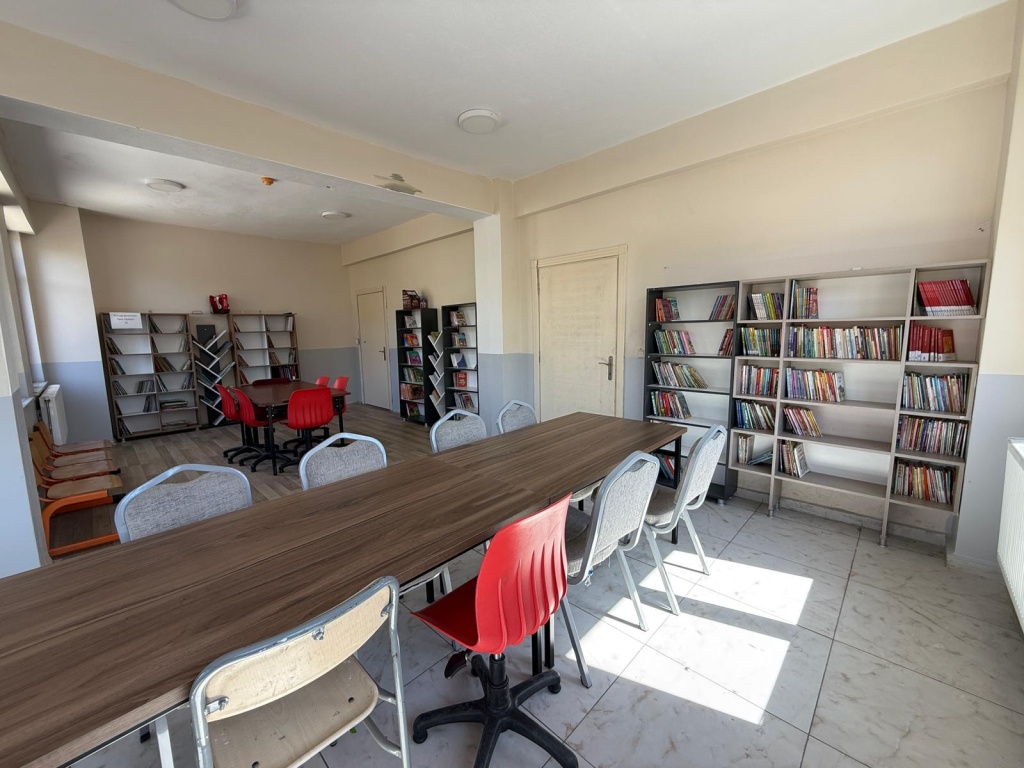 Öğrencilerimizin eğitimine ve okuma alışkanlıklarının gelişimine katkı sunmak amacıyla başlatılan yenileme süreci başarıyla tamamlandı. Okul Müdürümüz Adem Morkaya’nın öncülüğünde yürütülen çalışmalar sayesinde kütüphanemiz artık daha geniş, daha ferah ve daha konforlu bir alana kavuştu.